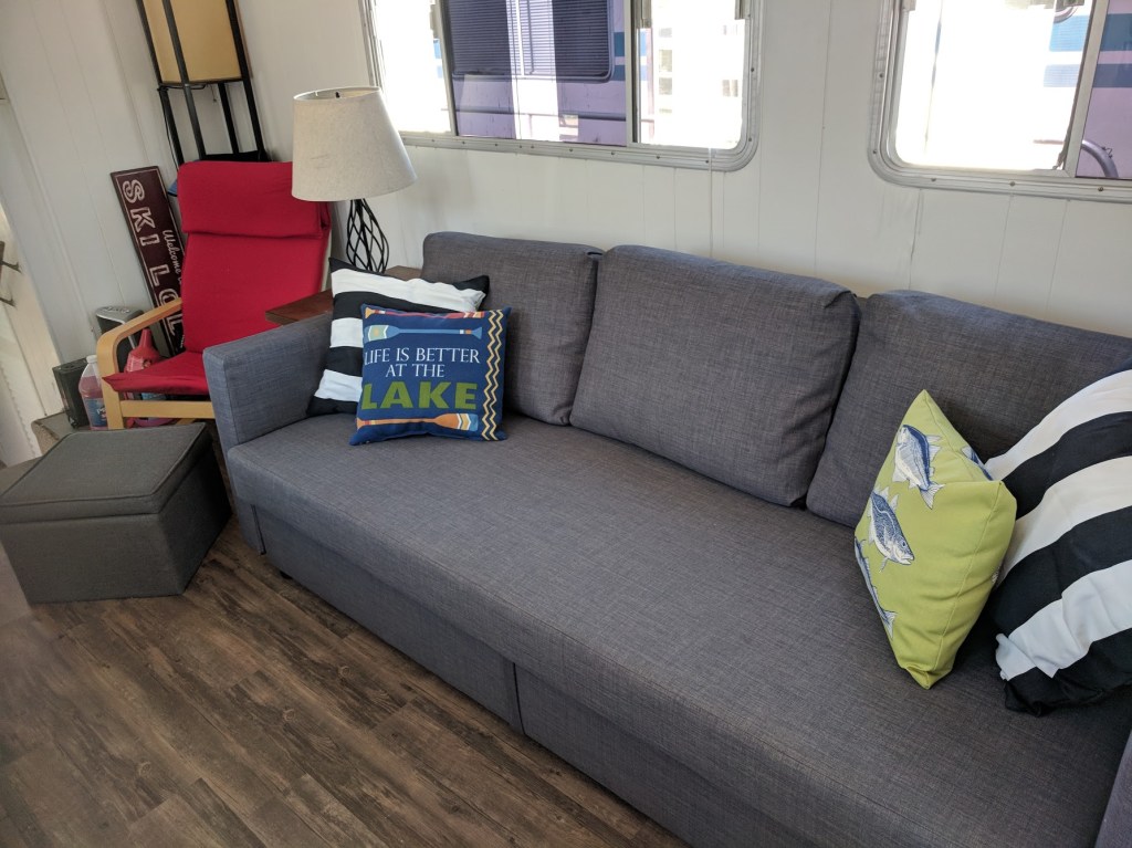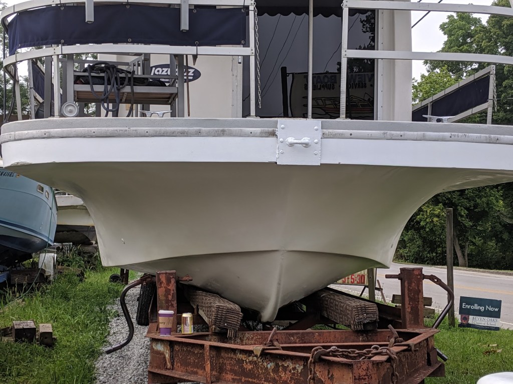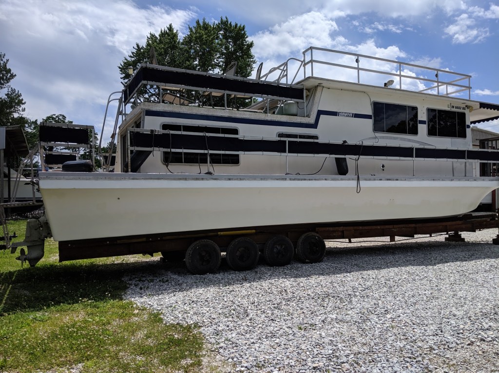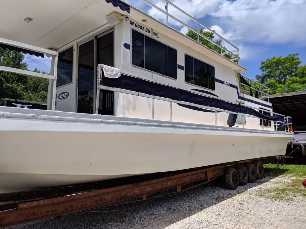 This 1981 Gibson Lazy Cruise Houseboat has a slip on Lake Monroe at Two Herons Marina. We put a lot of love into it over the years, but moved and just don’t use it enough. Right now it’s dry-docked and we’ve been renovating it. Price = 12k/obo.